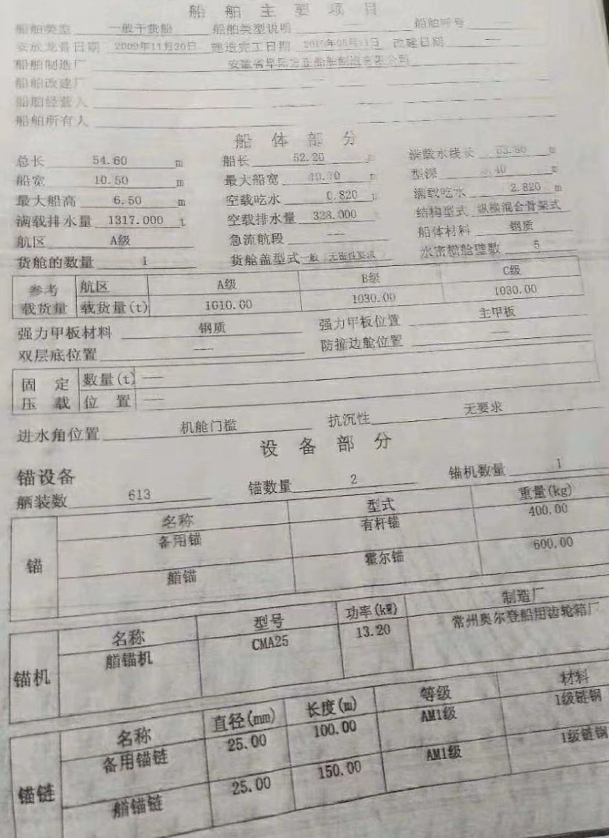 Size (Unit:m) : 54.6*10.5*6.5