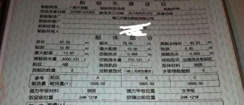 Main Engine Model:潍柴 580马力X