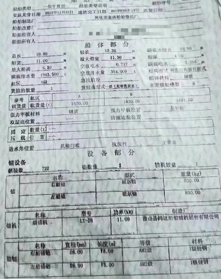 Main Engine Model:潍柴450×2