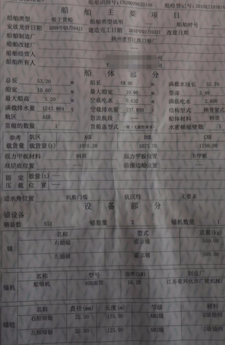 Main Engine Model:潍柴6160x2-275