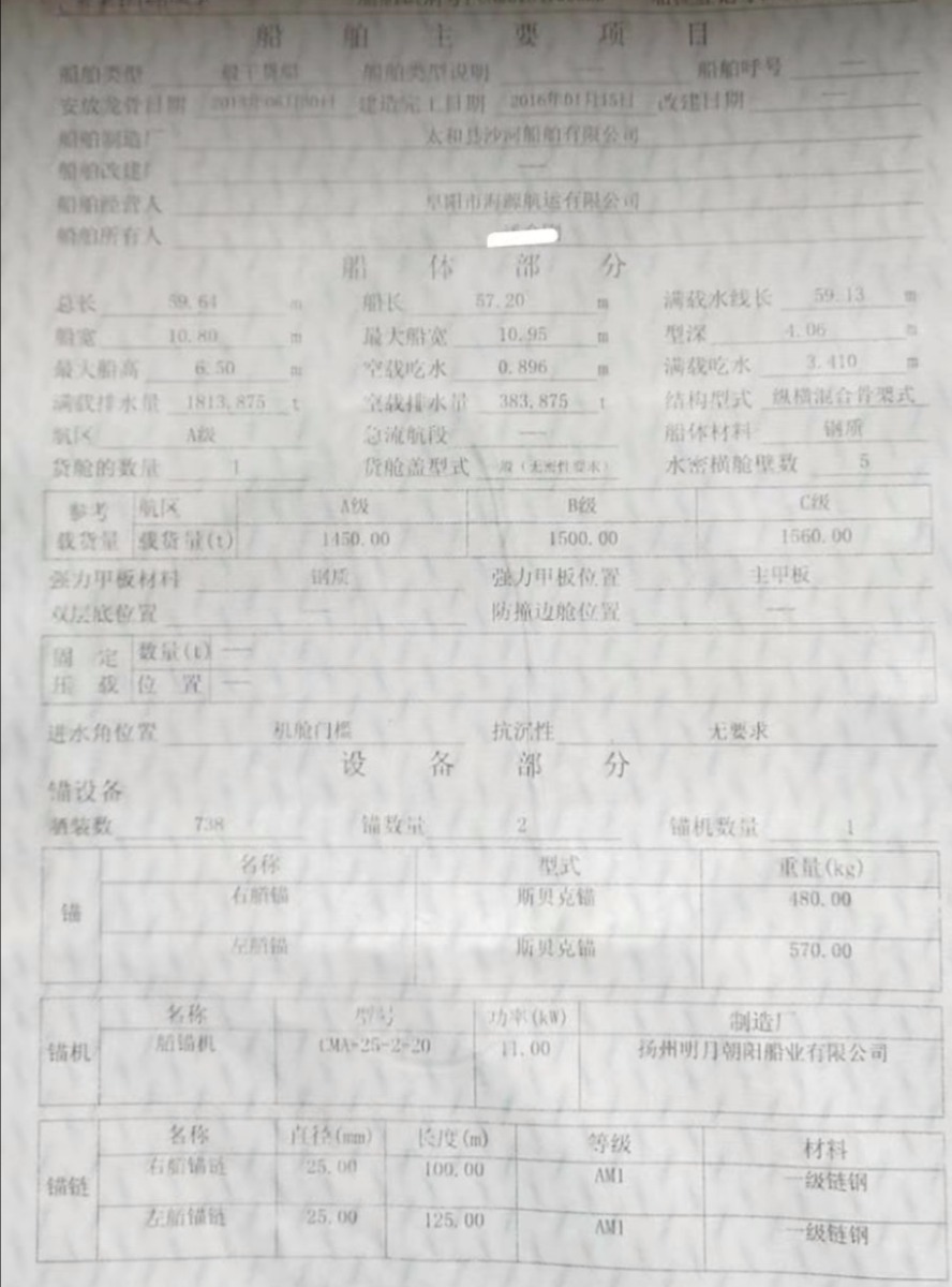 Main Engine Model:潍柴350x2
