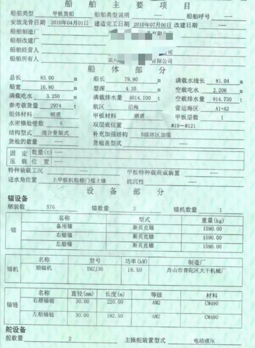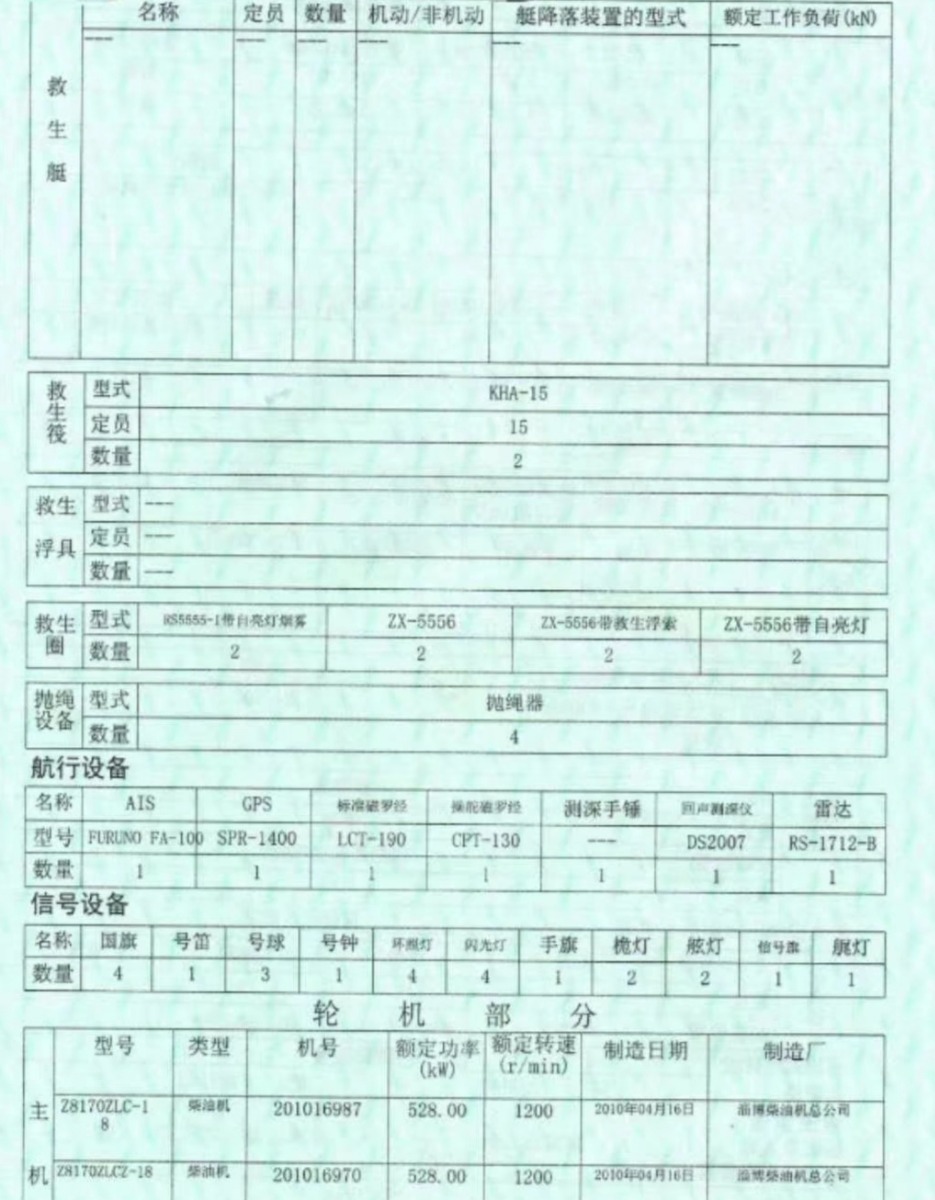 Main Engine Model:淄柴8170/528- 2