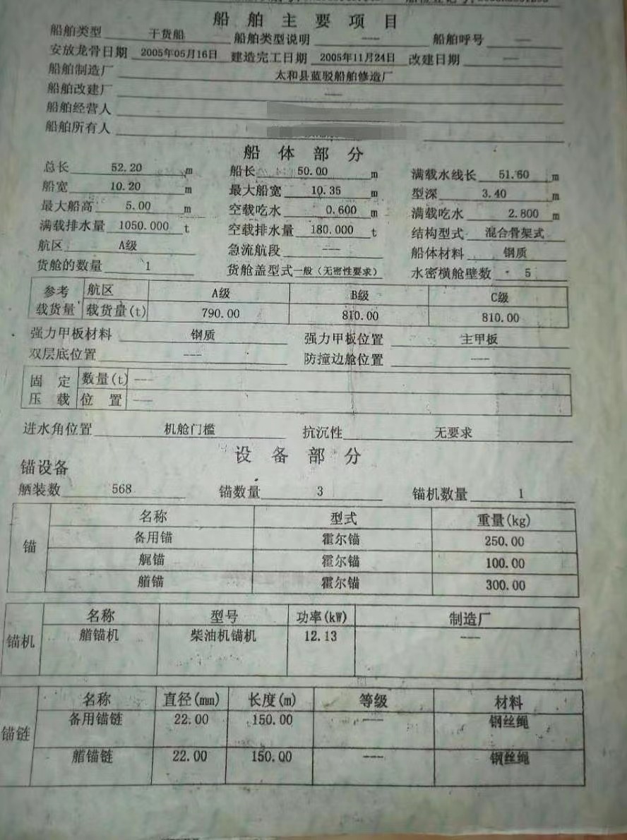 Main Engine Model:潍柴250X2
