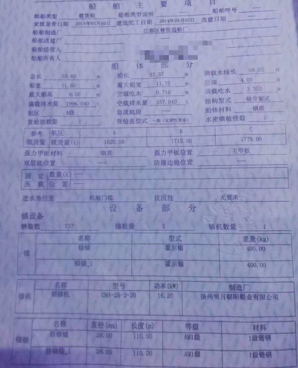 Main Engine Model:潍柴408*2
