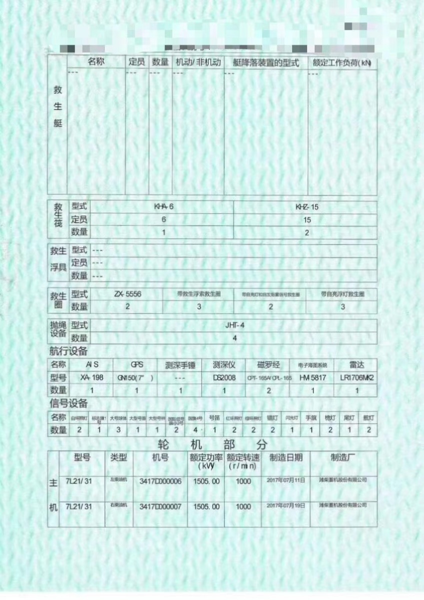 Main Engine Model:潍柴1505x2