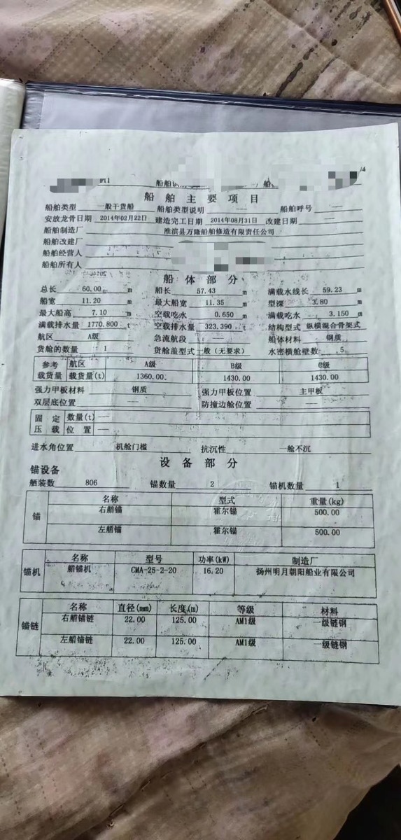 Main Engine Model:潍柴350×2
