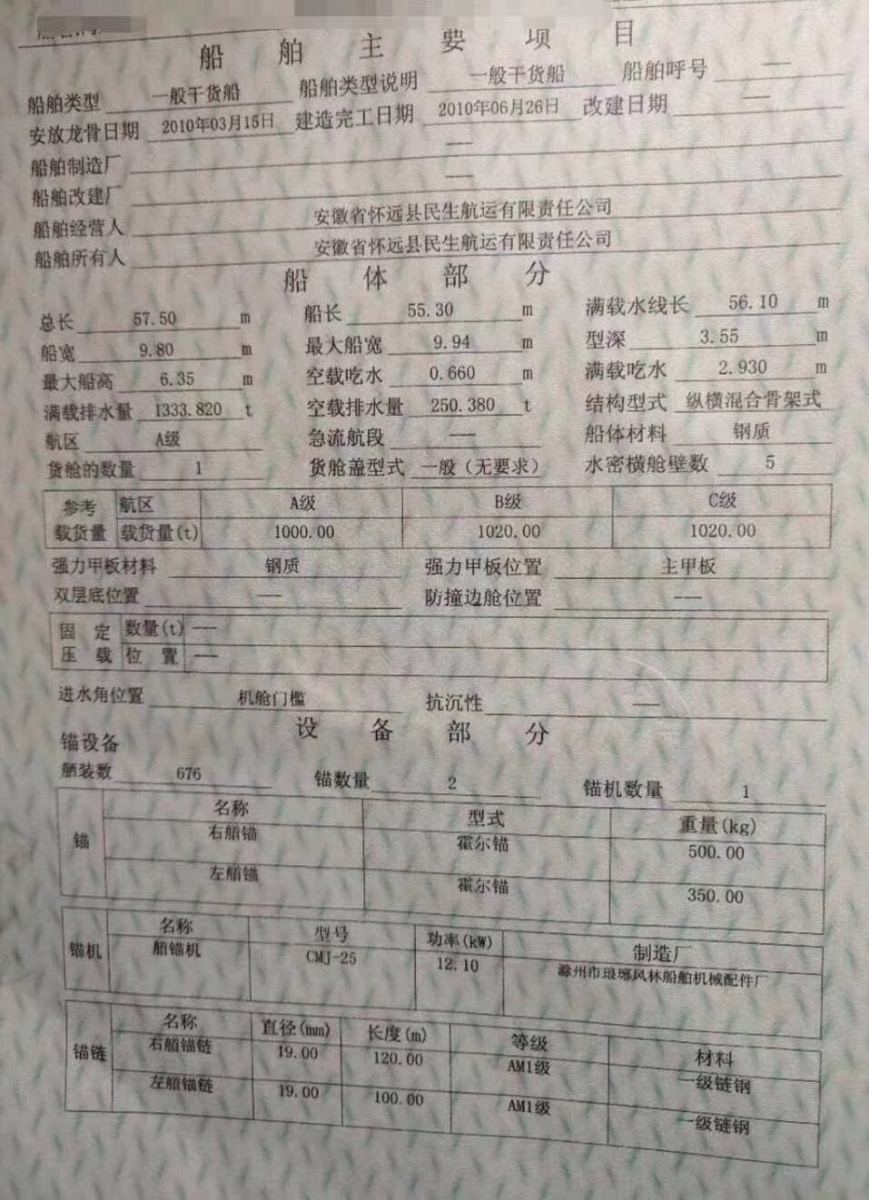 Main Engine Model:主机潍柴275x2