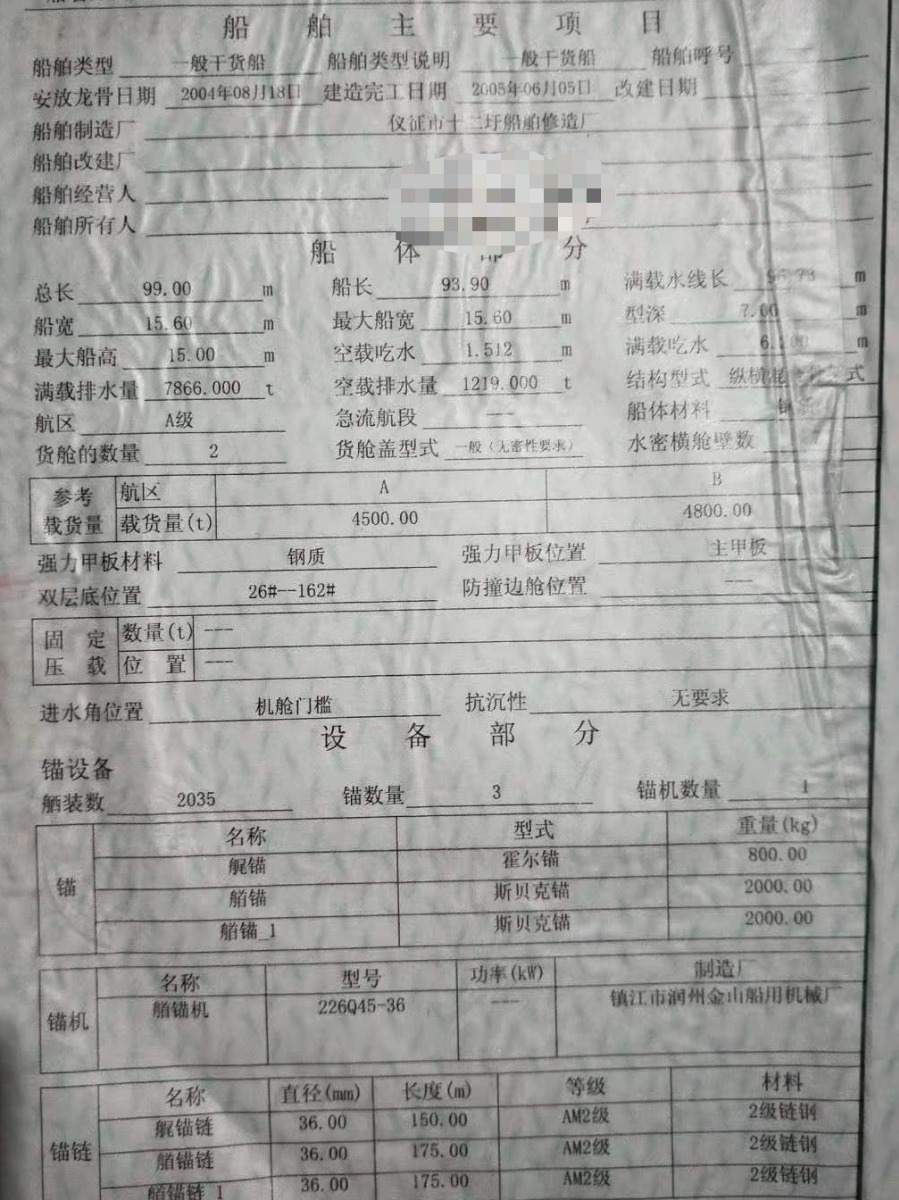 Main Engine Model:重庆潍柴6200-950
