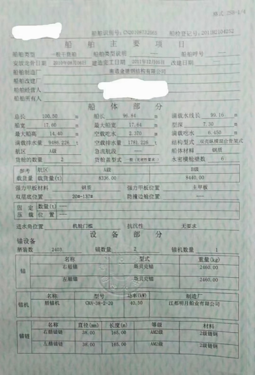 Main Engine Model:重柴6200/950/2