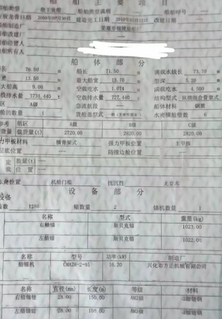 Main Engine Model:540×2潍柴