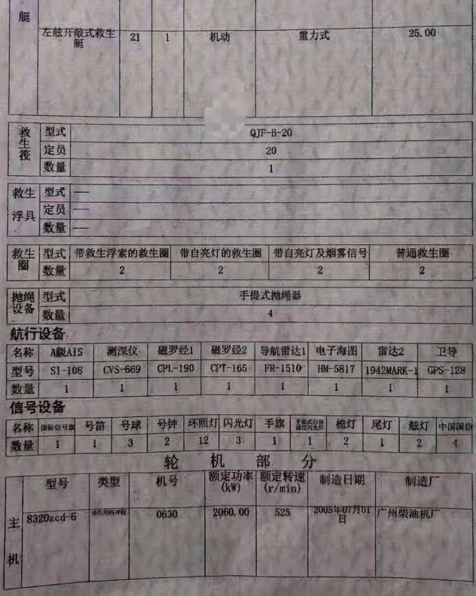 Main Engine Model:广柴8320-2060kw