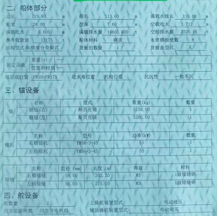Main Engine Model:广柴6320-2400马力x2