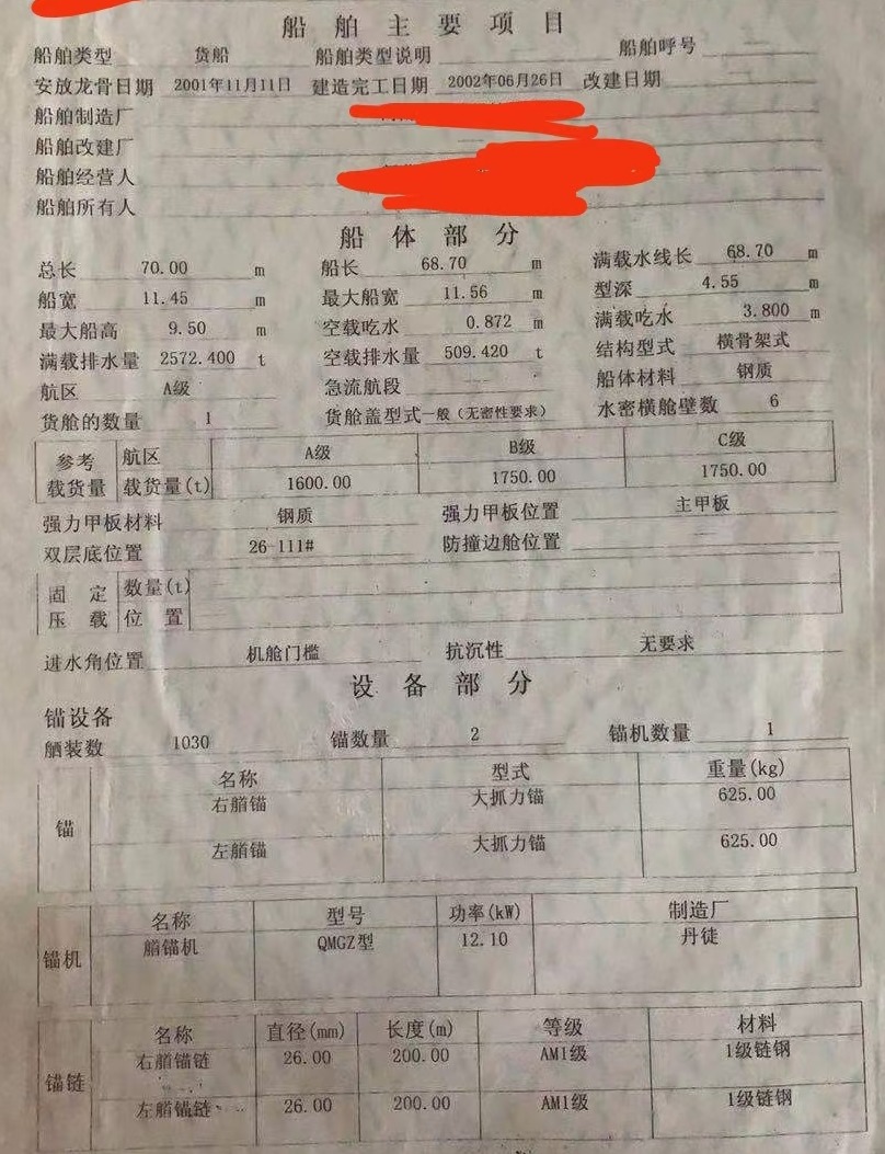 Main Engine Model:潍坊275x2
