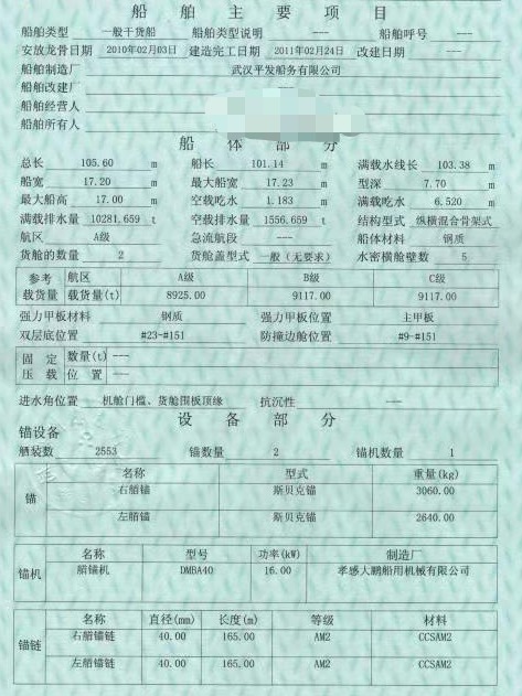 Main Engine Model:重庆潍柴6200