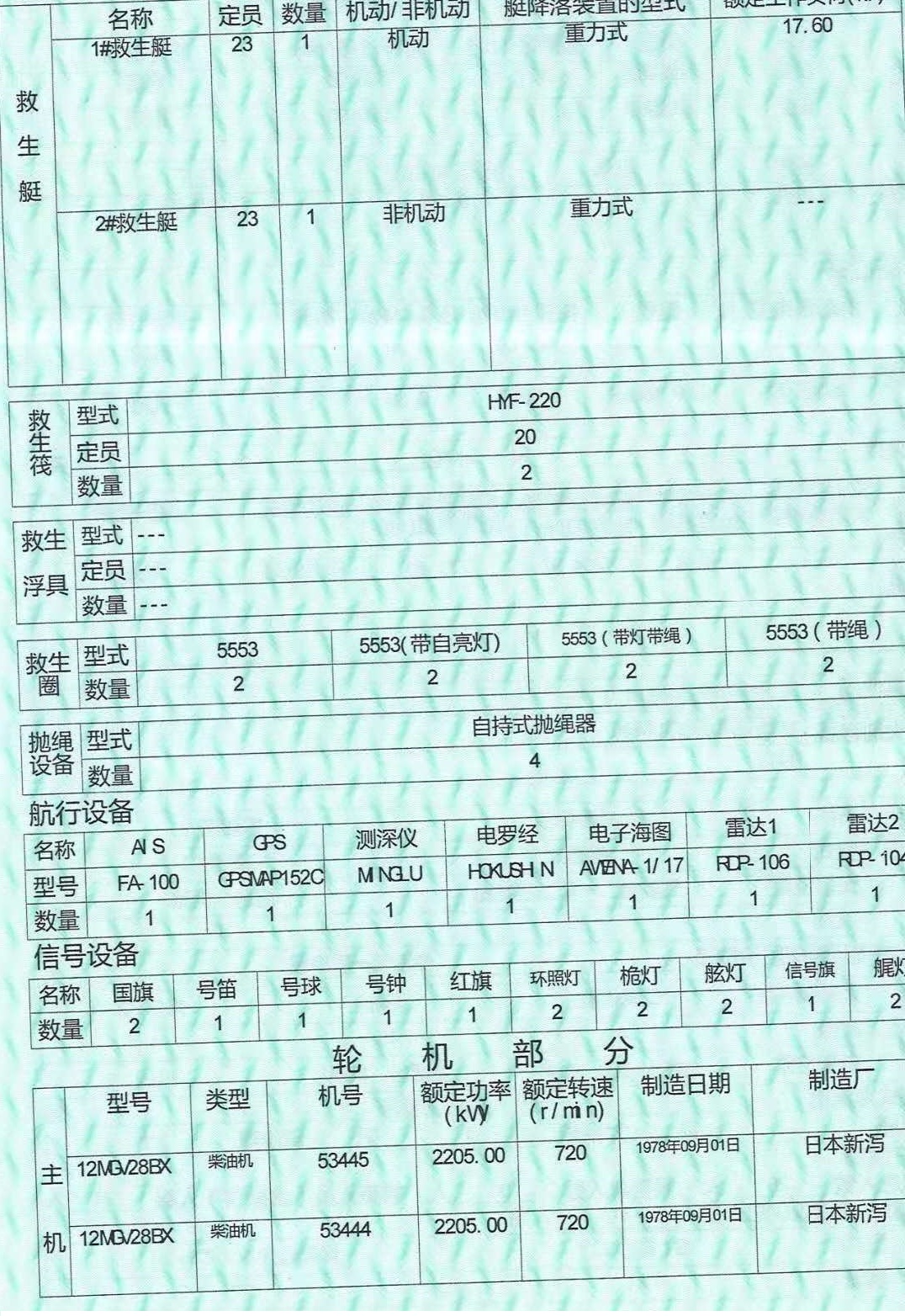 Main Engine Model:12MG/28BX-53445