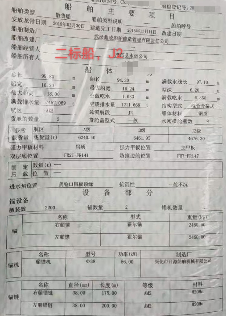 Main Engine Model:重柴6200/950x2