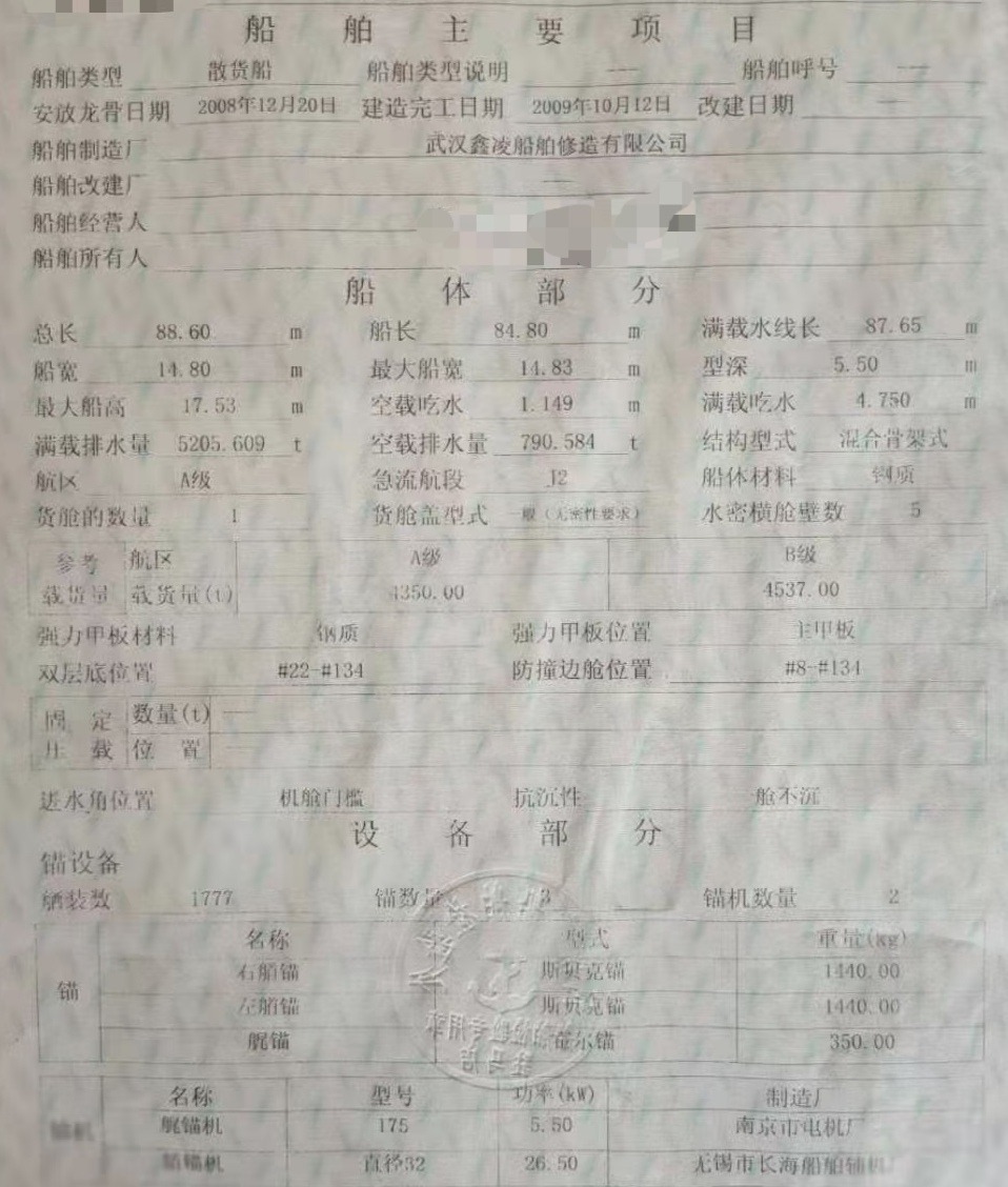 Main Engine Model:淄博6170型,620马力