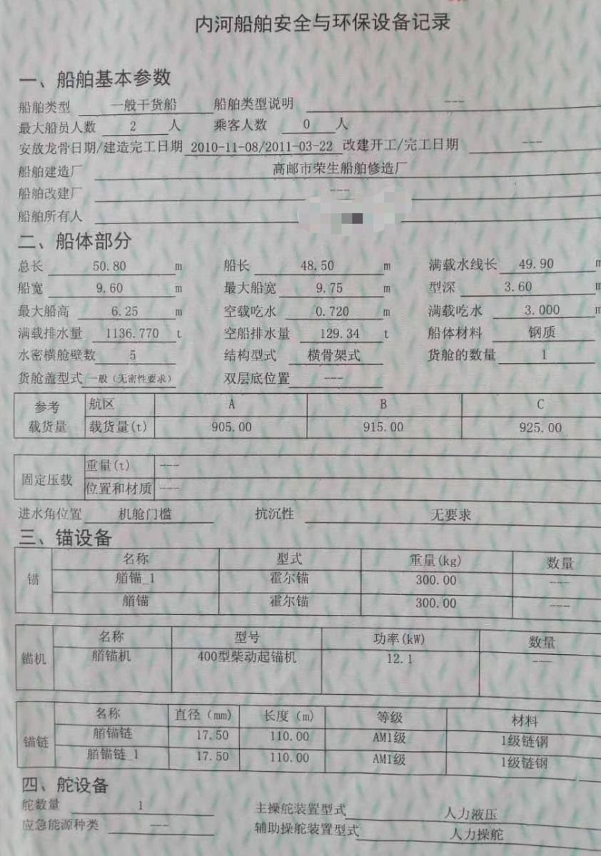 Main Engine Model:450潍柴