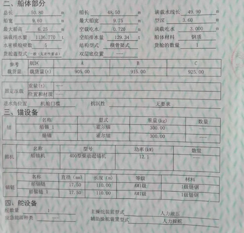 Main Engine Model:450潍柴