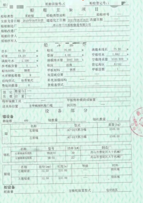 Main Engine Model:潍坊8170两台816马力