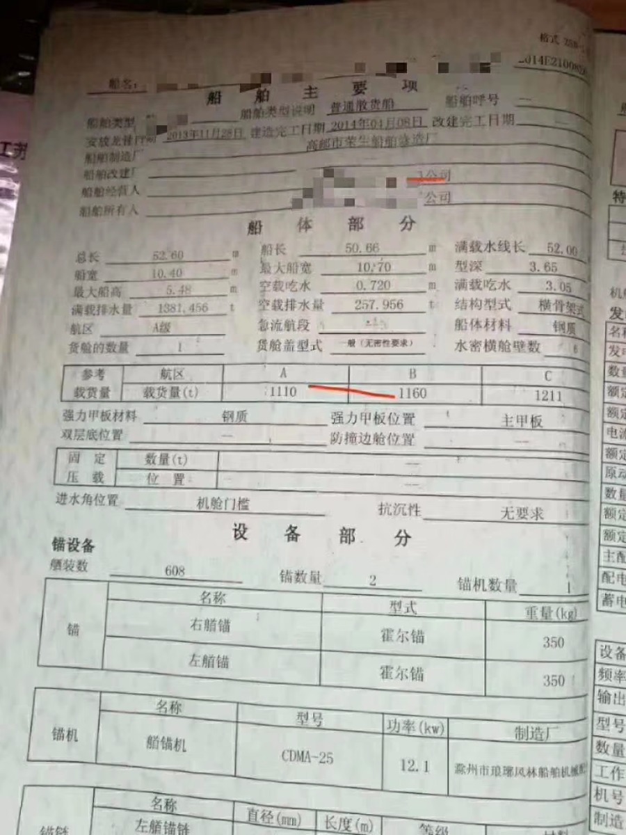 Main Engine Model:weichai520x2