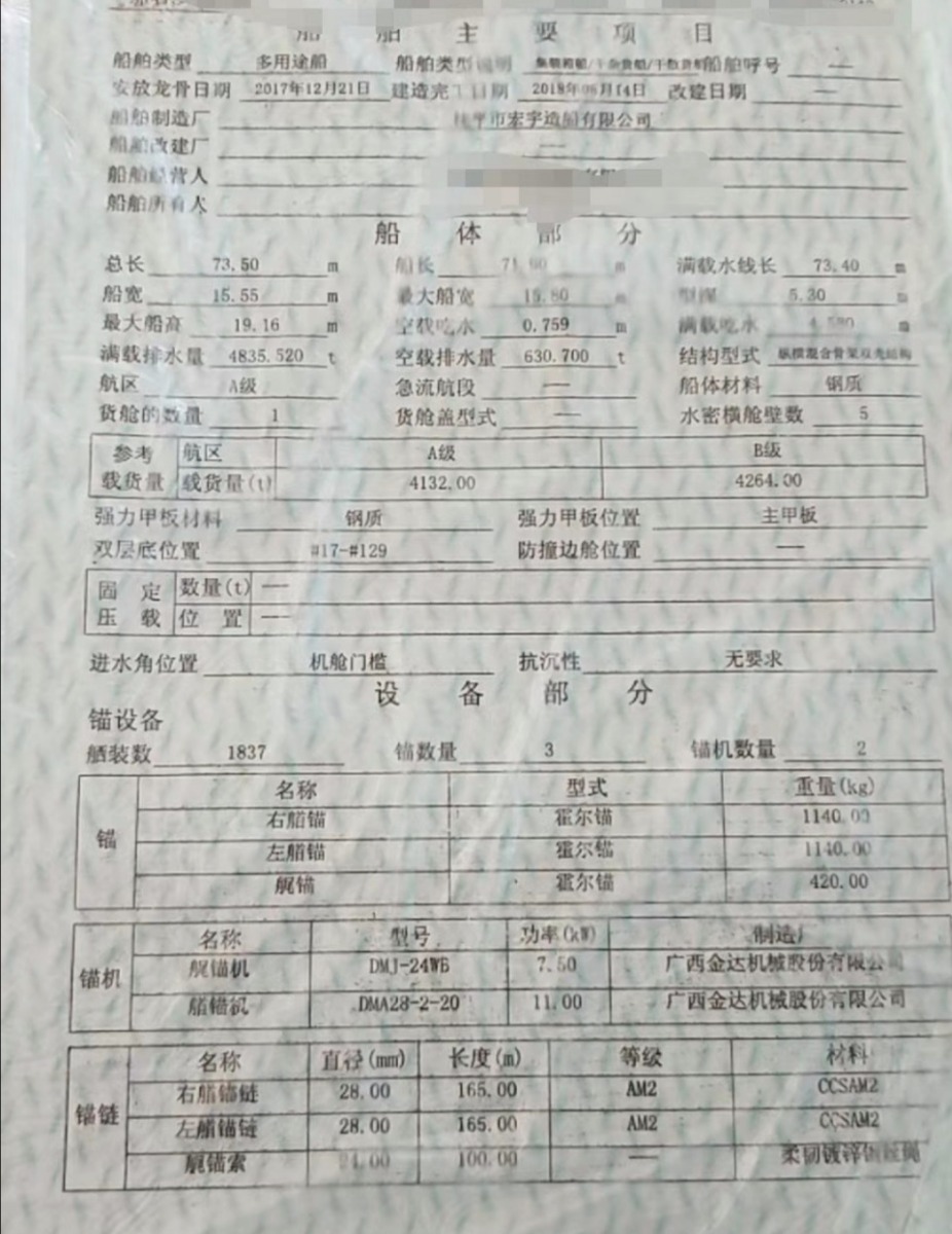 Main Engine Model:玉柴700*2