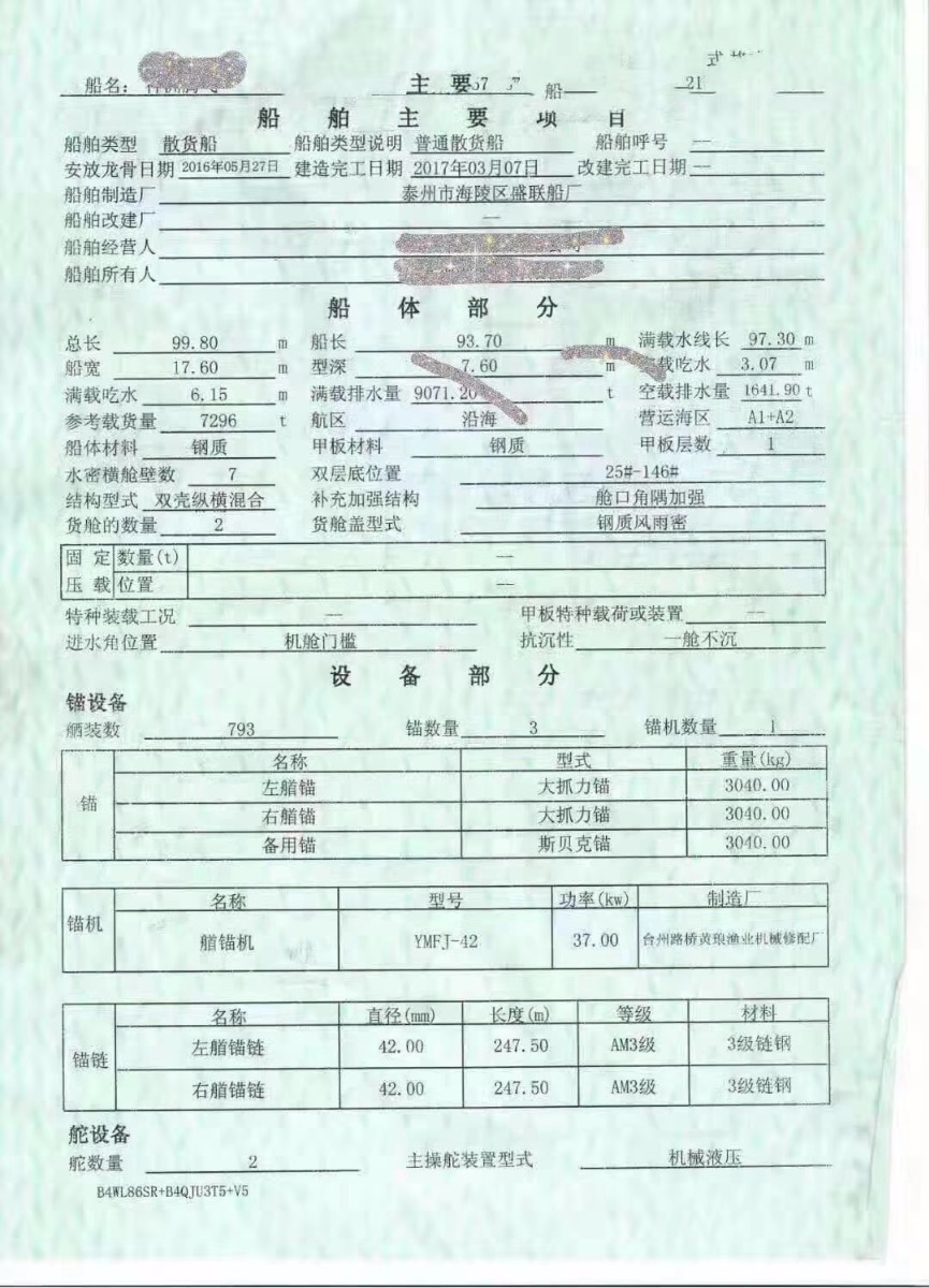 Main Engine Model:淄6210 882kw x 2