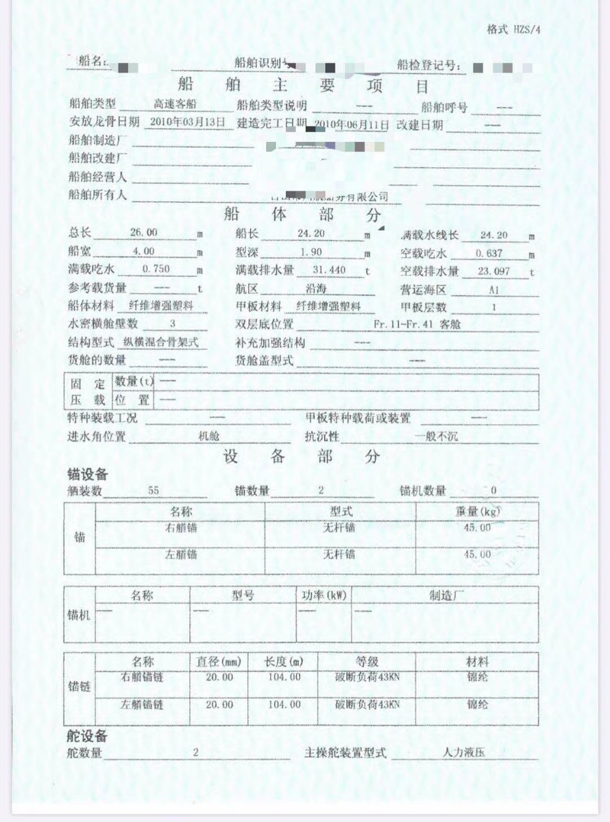 Main Engine Model:维柴 275kw×2