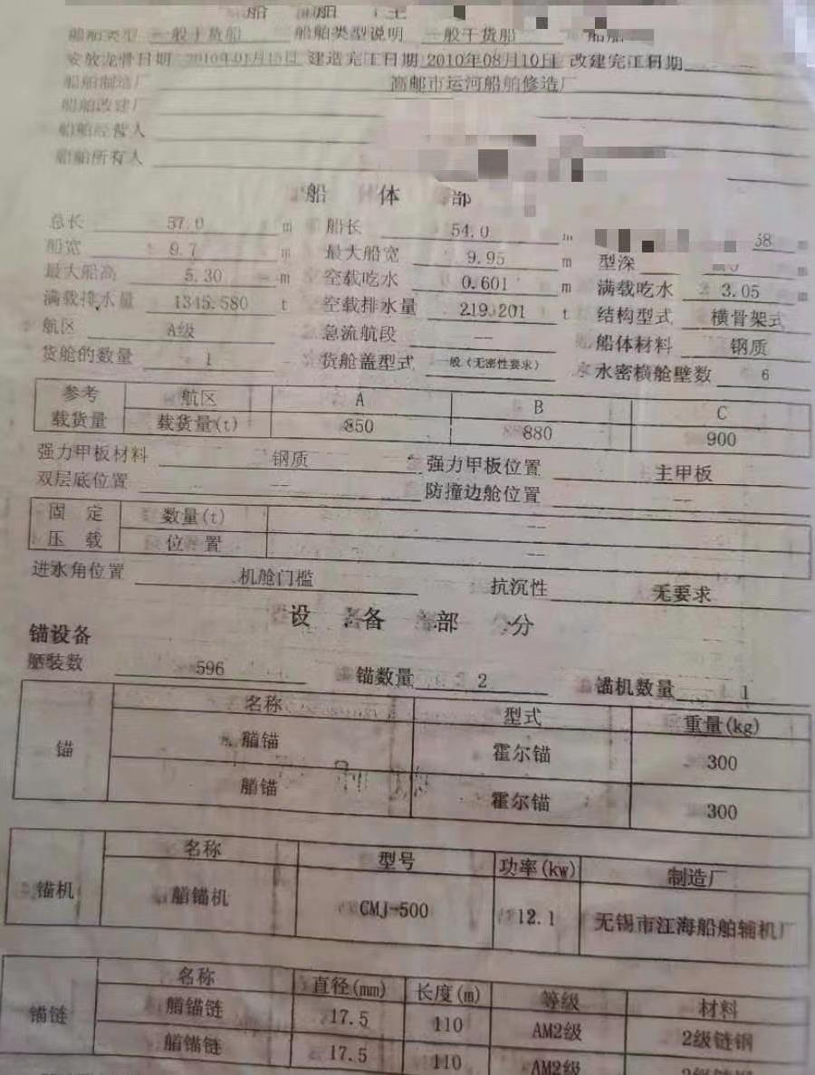 Main Engine Model:潍柴6170/350*2