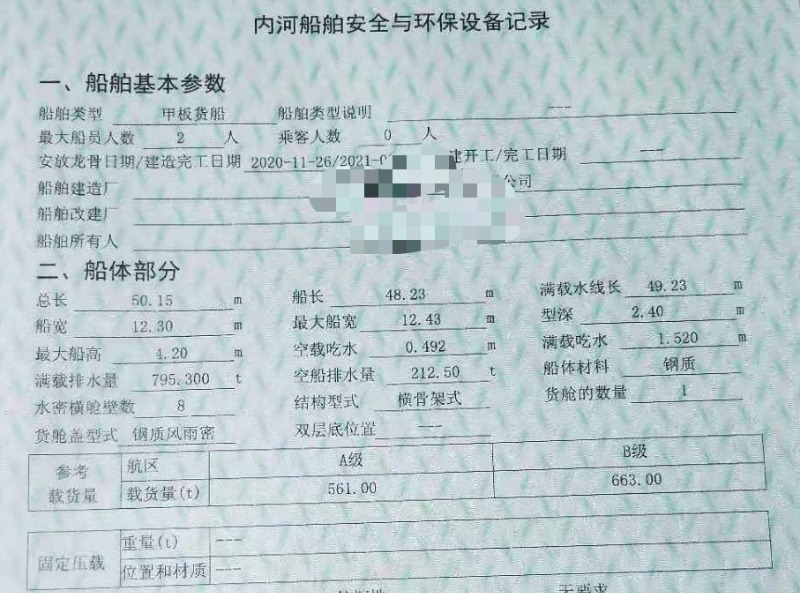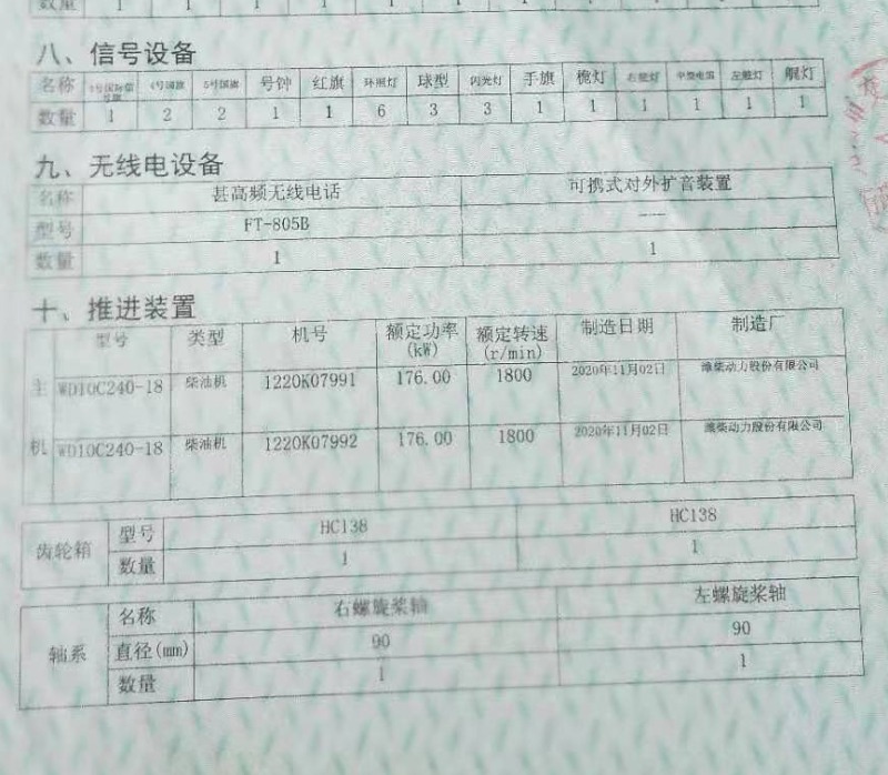 Main Engine Model:潍柴240马力2台