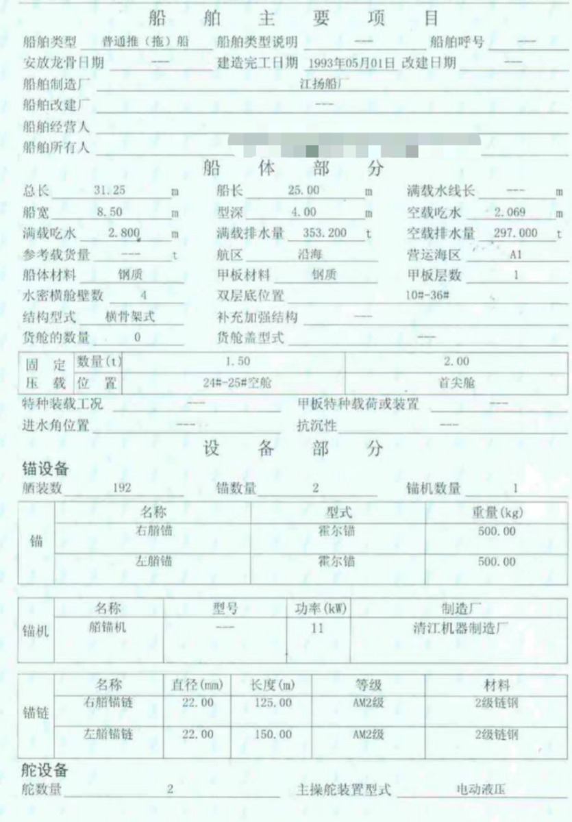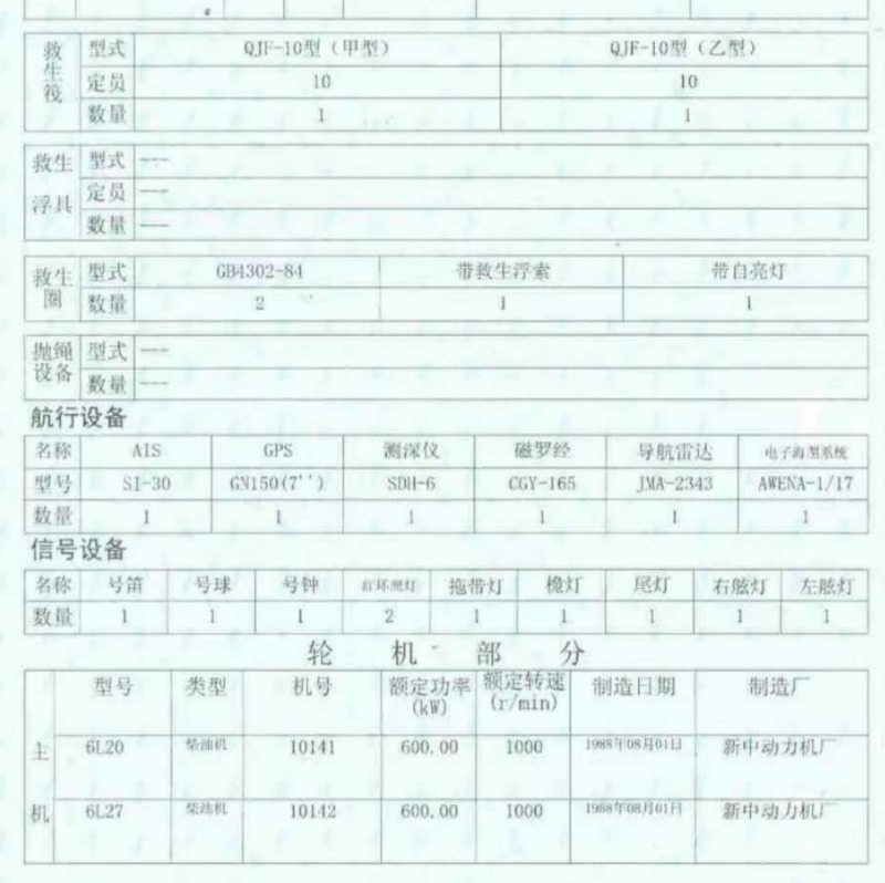 Main Engine Model:新中动力 6L20 600KWx2