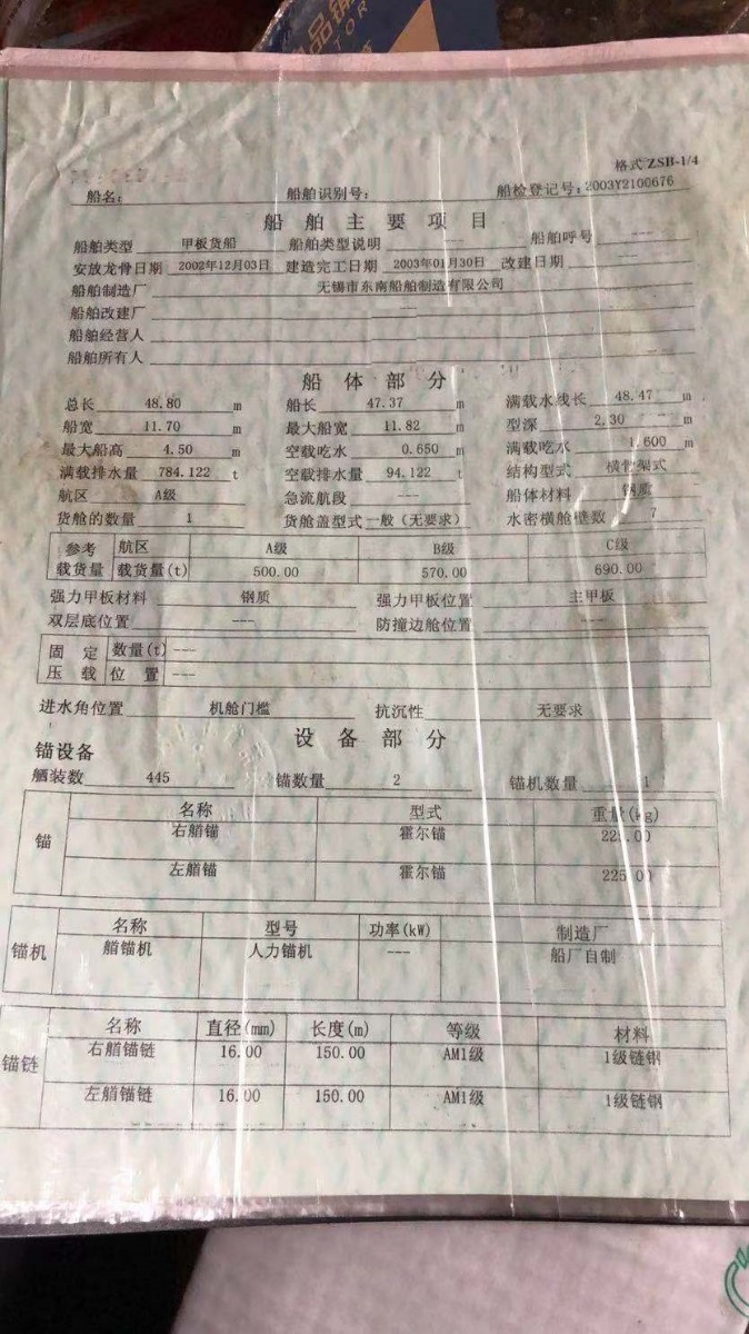 Main Engine Model:上柴240马力,2部