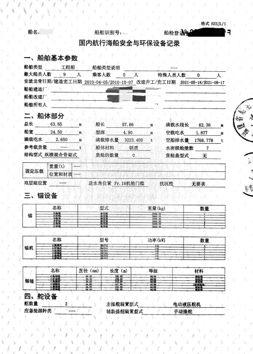 Ship dimensions: length, width and depth: 63.7m +24.5m +4.9m;
