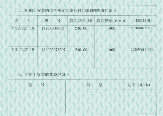Main Engine Model:潍柴WP12C327-18