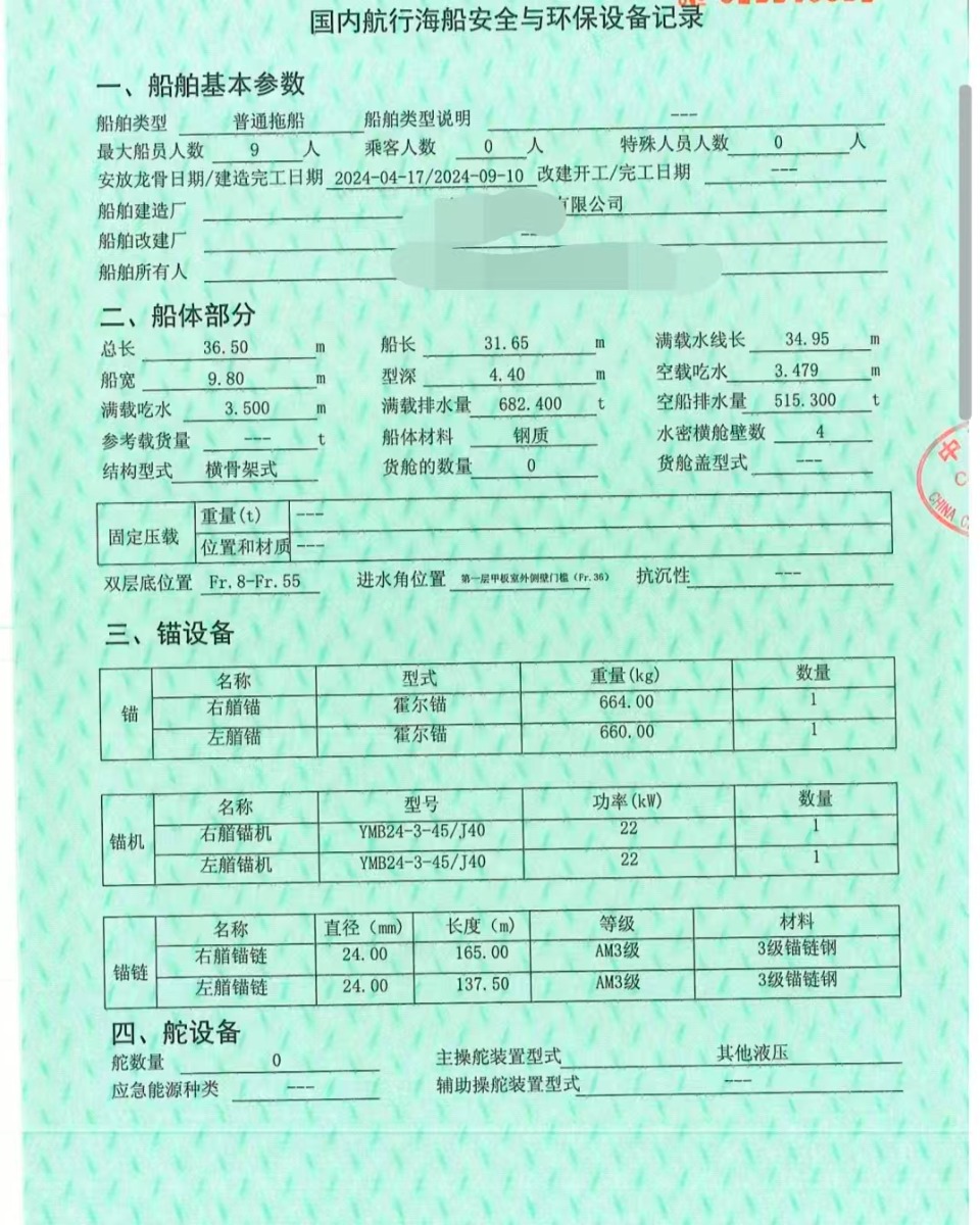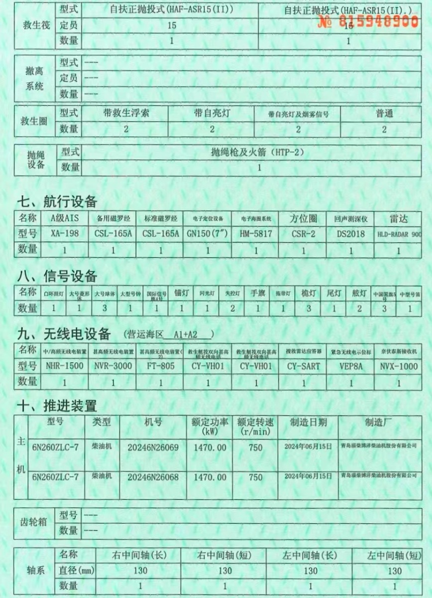 Main Engine Model:淄博6N260ZLC