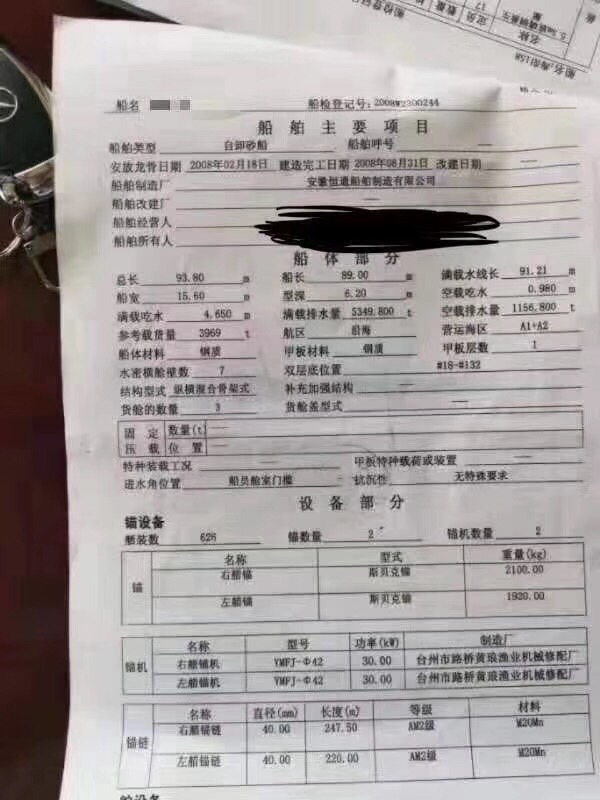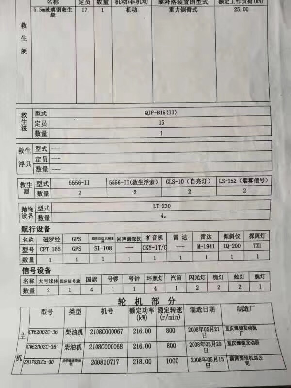Main Engine Model:潍柴6200x3